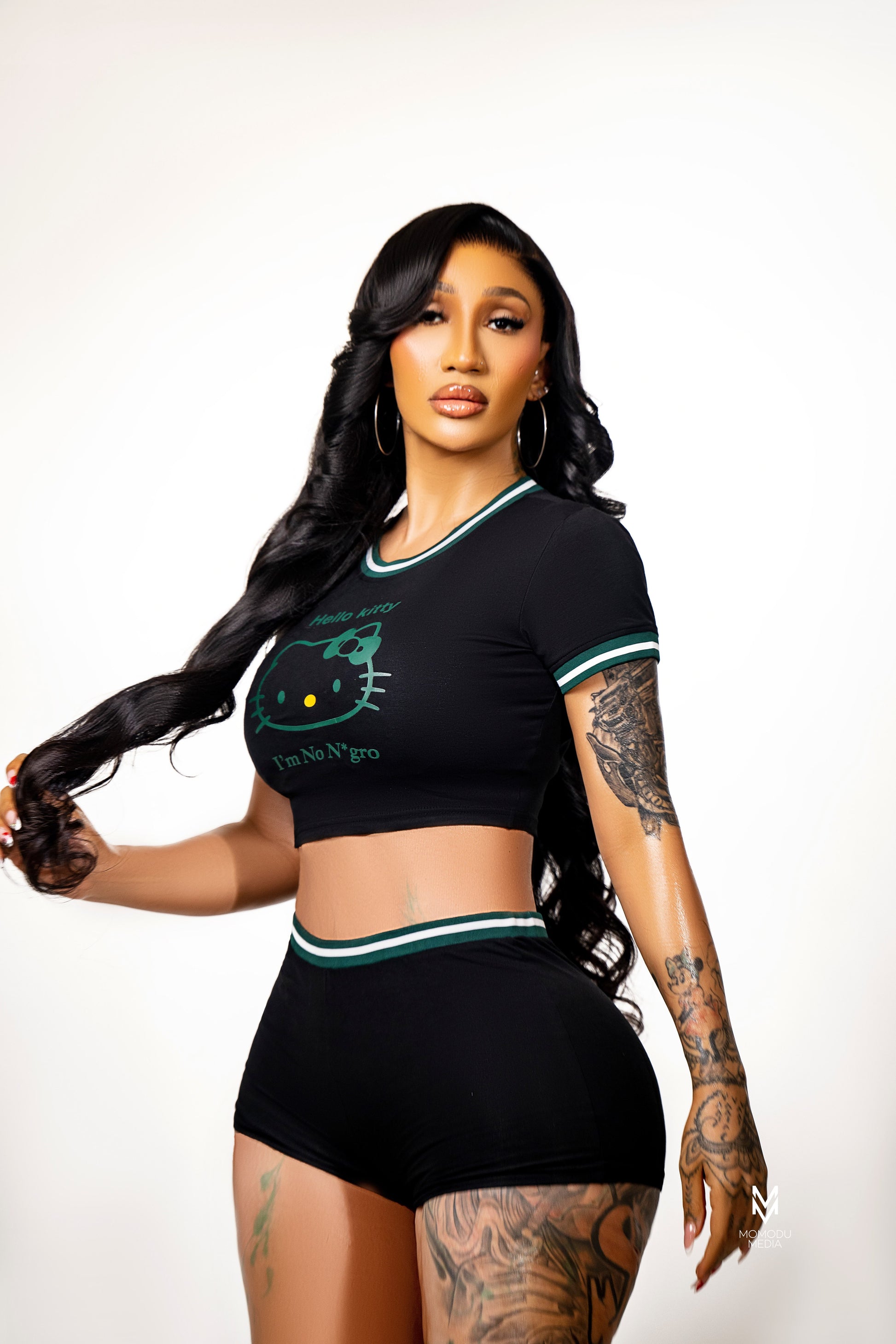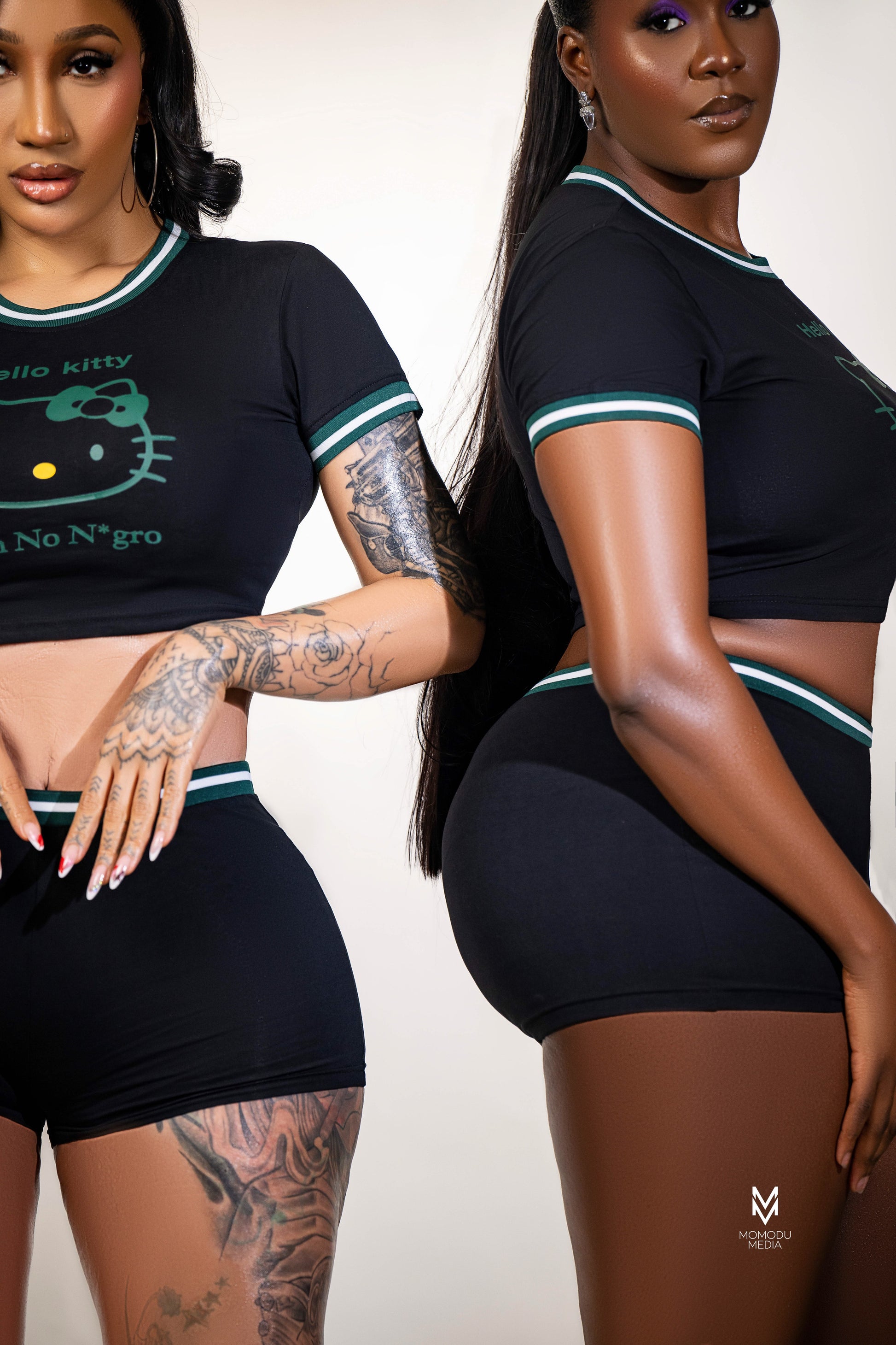 The Mid night recess set pairs a cropped tee and high-rise shorts in crisp white with bold green piping for a sporty-luxe edge. The statement graphic adds a unique, conversation-starting twist that makes this set impossible to ignore.